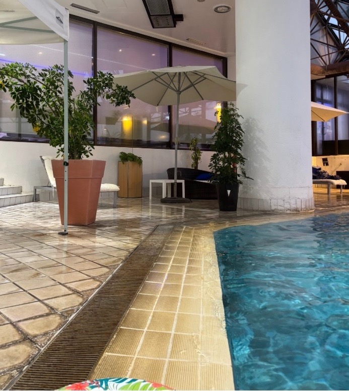 プールはチェックイン前の12:00から入ることができます。小さめのすべり台がひとつあるだけのさほど広くもない普通の温水(温泉)プールですが、子供たちは何度も入りたがり、とても楽しんでいました。水深50㎝の赤ちゃん用プールもあります。